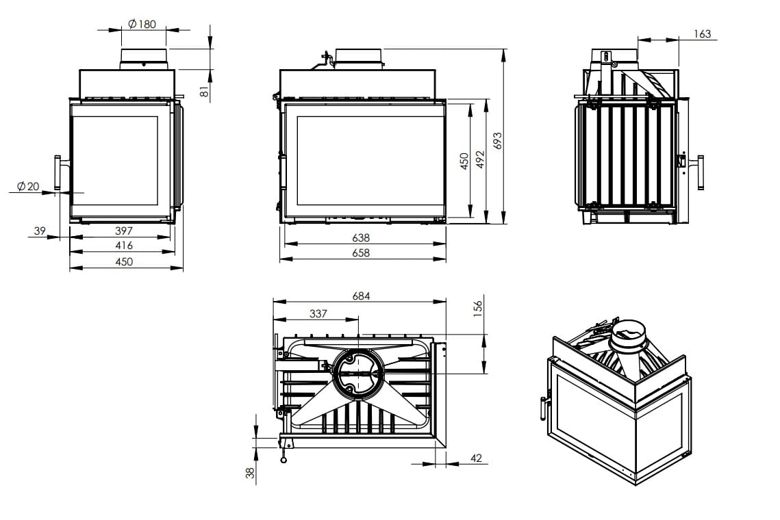 Wkład jest wyposażony w szyber, wermikulitowy deflektor, popielnik, posiada także opcję podłączenia powietrza z zewnątrz (CDP).