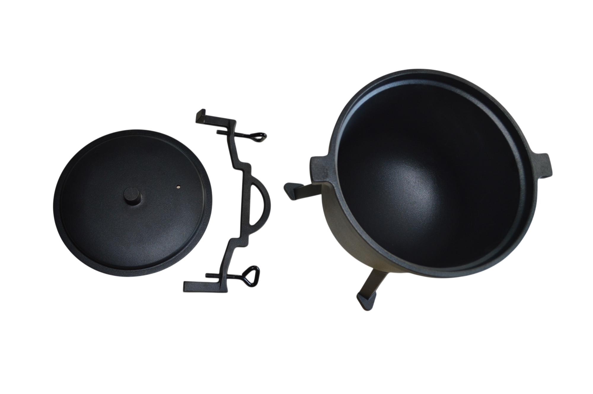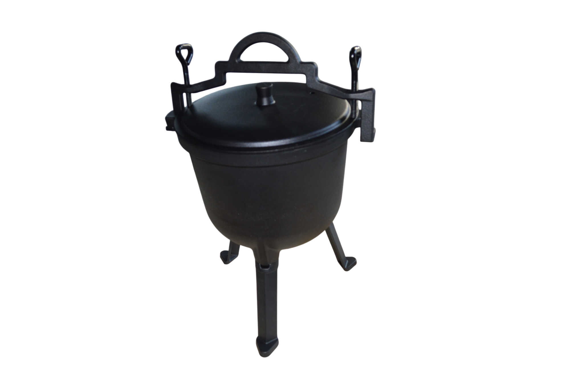 Kociołek posiada zamykaną żeliwną pokrywę oraz uchwyt z możliwością zawieszenia na trójnogu. Optymalnie zaprojektowane grubości ścianek oraz dna powodują równomierne nagrzewanie się całej powierzchni.