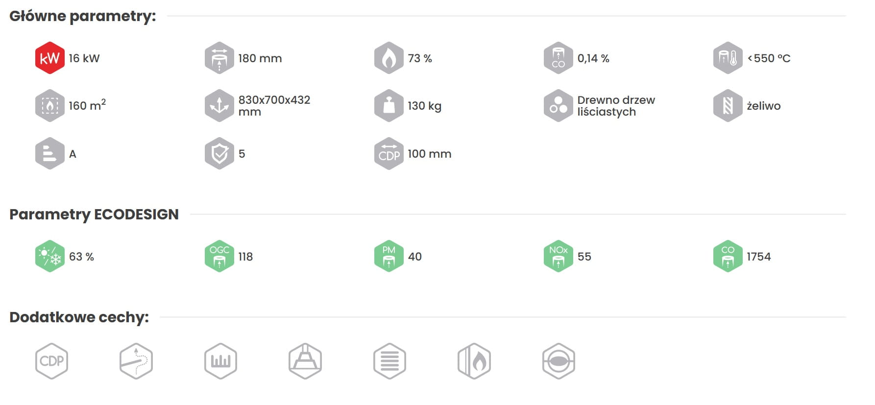 - średnica wylotu spalin: 180 mm