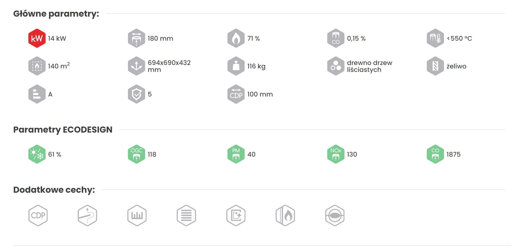 - średnica wylotu spalin: 180 mm